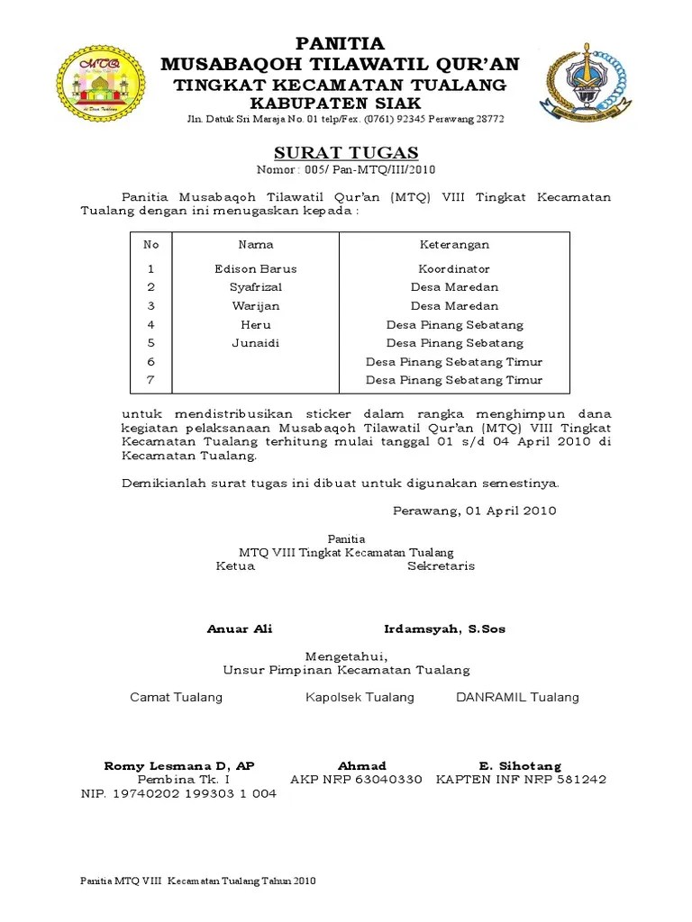 Tidak menggunakan footage dan stockshot gambar yang dibuat oleh . Berdasarkan surat ketua tpk desa…. Membuat nomor peserta mtq f. Kelengkapan administrasi lomba, mulai dari pendaftaran, form lomba, sk kegiatan proposal dan pamflet; St/02/ix/2019 tanggal 9 oktober 2019 hal petunjuk teknis penyelenggaraan mtq . Mengecek daftar peserta mtq e. " janganlah kamu jadikan (nama) allah dalam sumpahmu. Memberi stempel untuk laporan bulanan, sertifikat, undangan, dsb g. Contoh surat dari tpk kepada pelaksana kegiatan. Ketentuan penyelenggaraan mtq iv korpri dan persyaratan peserta sebagai berikut : Bahwa berdasarkan surat keputusan rektor nomor. Bahwa kegiatan musabaqah tilawatil qur'an (mtq) mahasiswa. Surat tugas tersebut harus dibawa pada waktu pendaftaran.